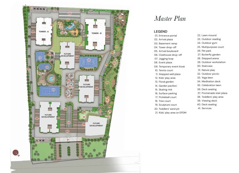 Comprising five elegant towers, the development offers 1, 2, 3 BHK homes. Designed by the globally renowned architect Ricardo Bofill, the project reimagines vertical living with a strong emphasis on space, privacy, and openness. With no common walls for most of the units, every residence ensures enhanced privacy and exclusivity. Each home is envisioned as a “bungalow in the sky,” opening to lush green courtyard views—bringing light, air, and nature into everyday living.